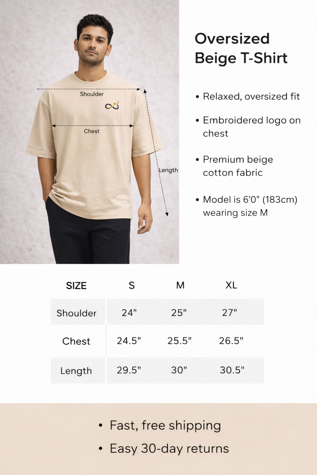 Perfect for men looking for oversized t-shirts, beige streetwear, minimal fashion, or premium everyday essentials.